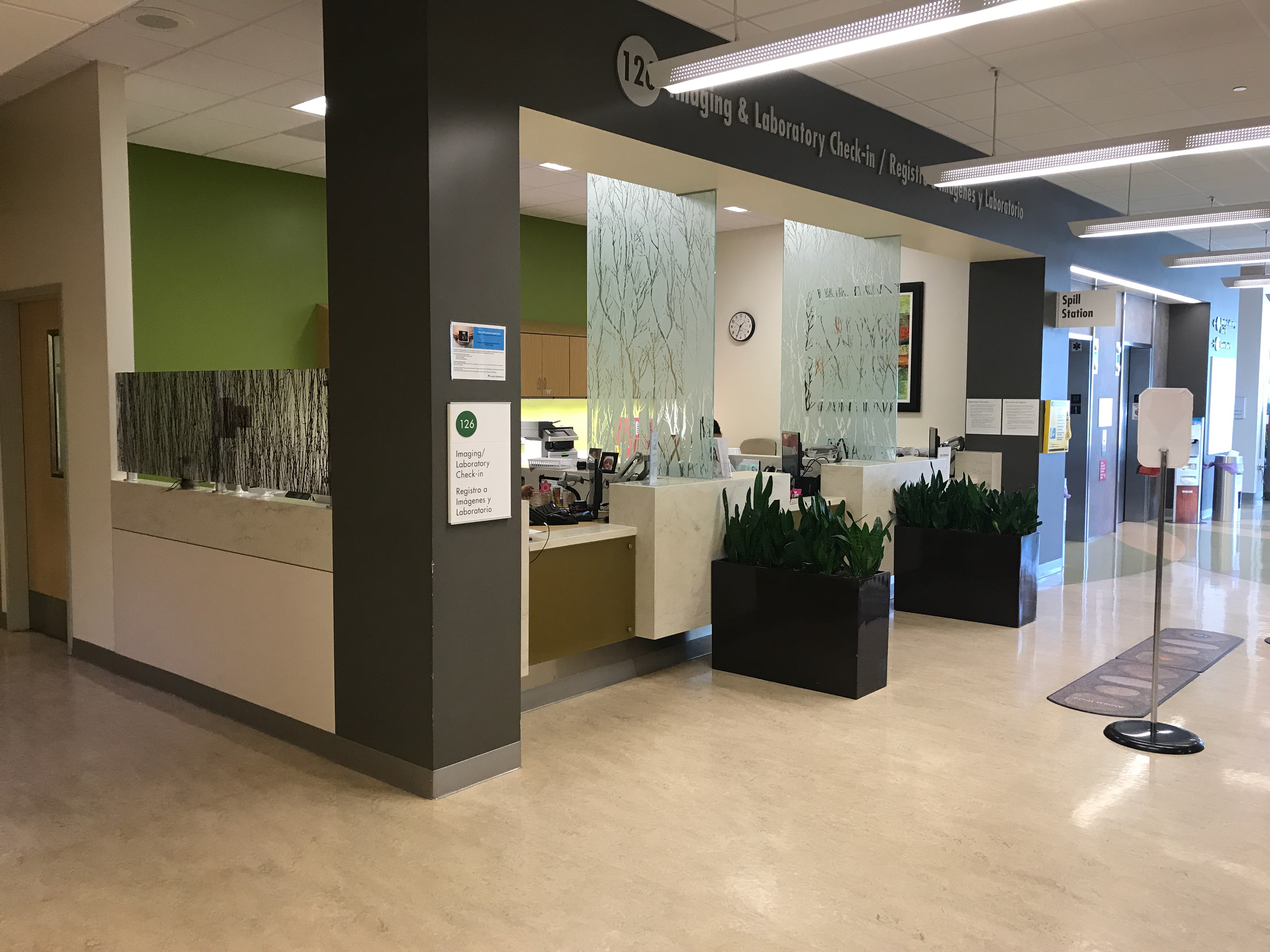 Convert 420 ft² (59.5 m²) patient check-in work space into a coffee and refreshment kiosk that fits within a branded environment